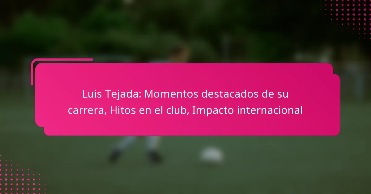 La carrera de Luis Tejada está marcada por hitos significativos en varios clubes, mostrando su capacidad goleadora y liderazgo. Su trayectoria incluye transferencias notables, impresionantes cifras de goles y contribuciones a victorias en campeonatos que han consolidado su legado en el fútbol.